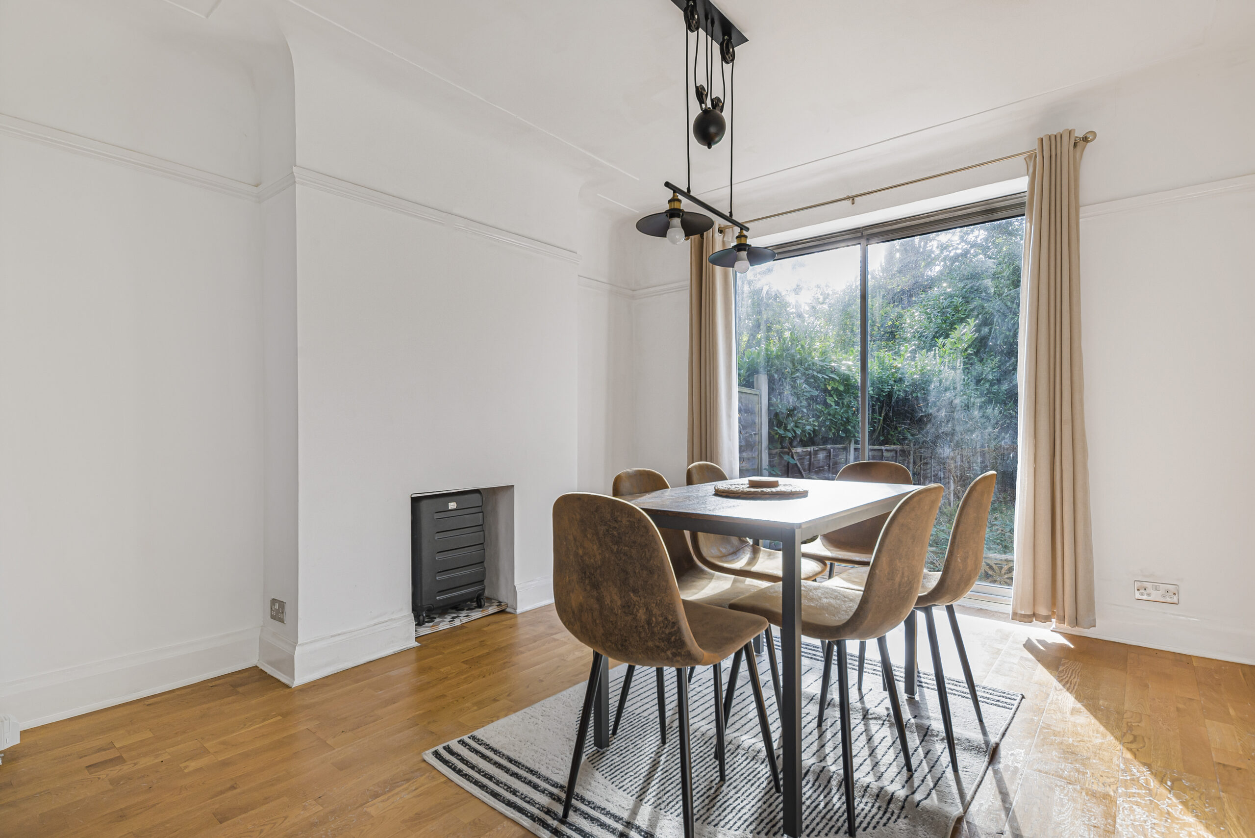 Inside, the home features a spacious 24ft dining/reception room, original fireplaces with ornate detailing, and a cosy wood-burning stove. The kitchen leads into a bright conservatory, offering lovely views over the rear garden.