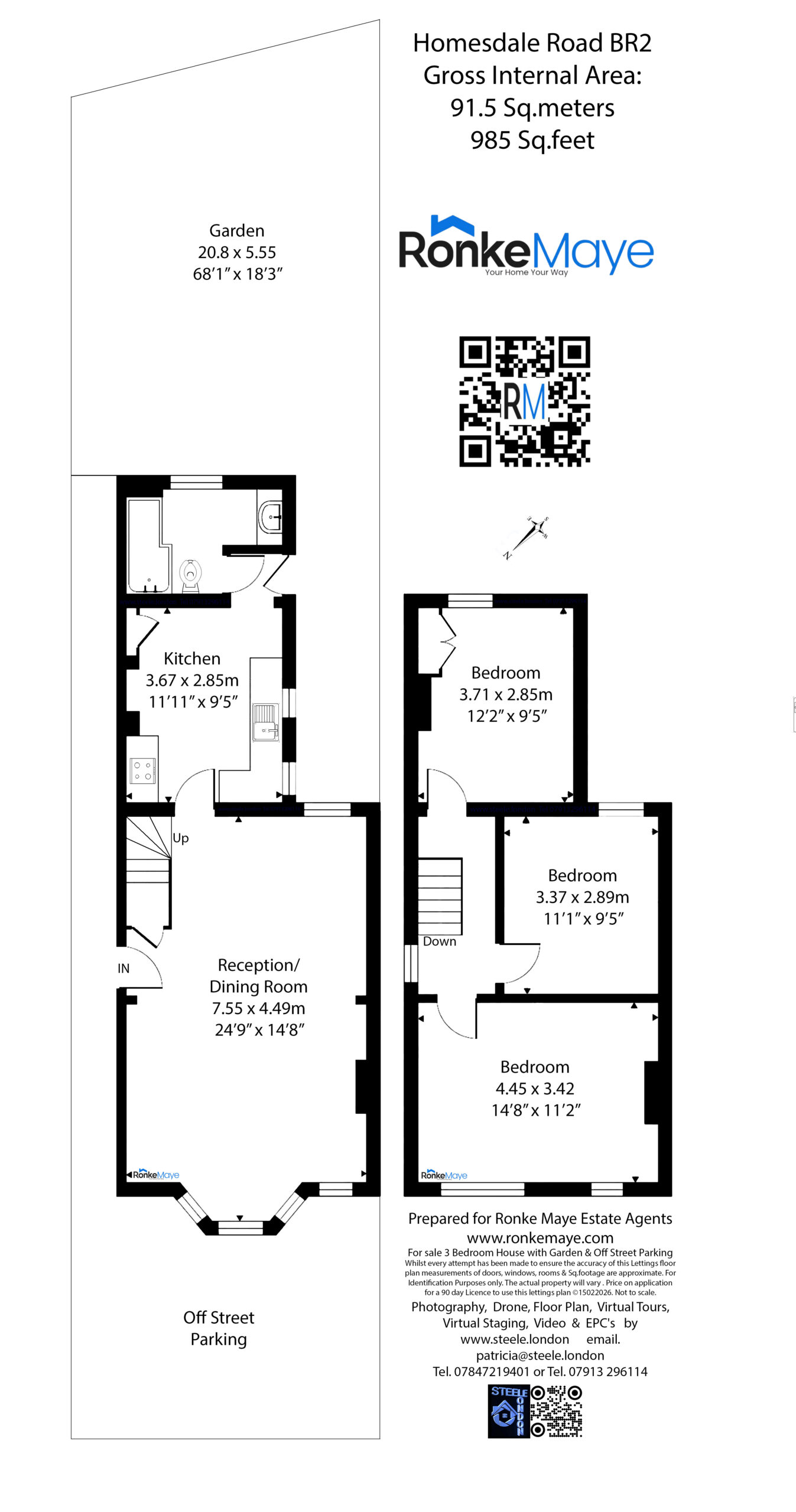 Ronke Maye Ltd is delighted to present this beautifully refurbished three-bedroom end-of-terrace freehold home on the highly sought-after Homesdale Road, BR2. Offering nearly 1,000 sq ft of bright, modern living space, a generous 68ft landscaped garden and off-street parking, this property is ideal for families, first-time buyers and upsizers seeking space, style and convenience.