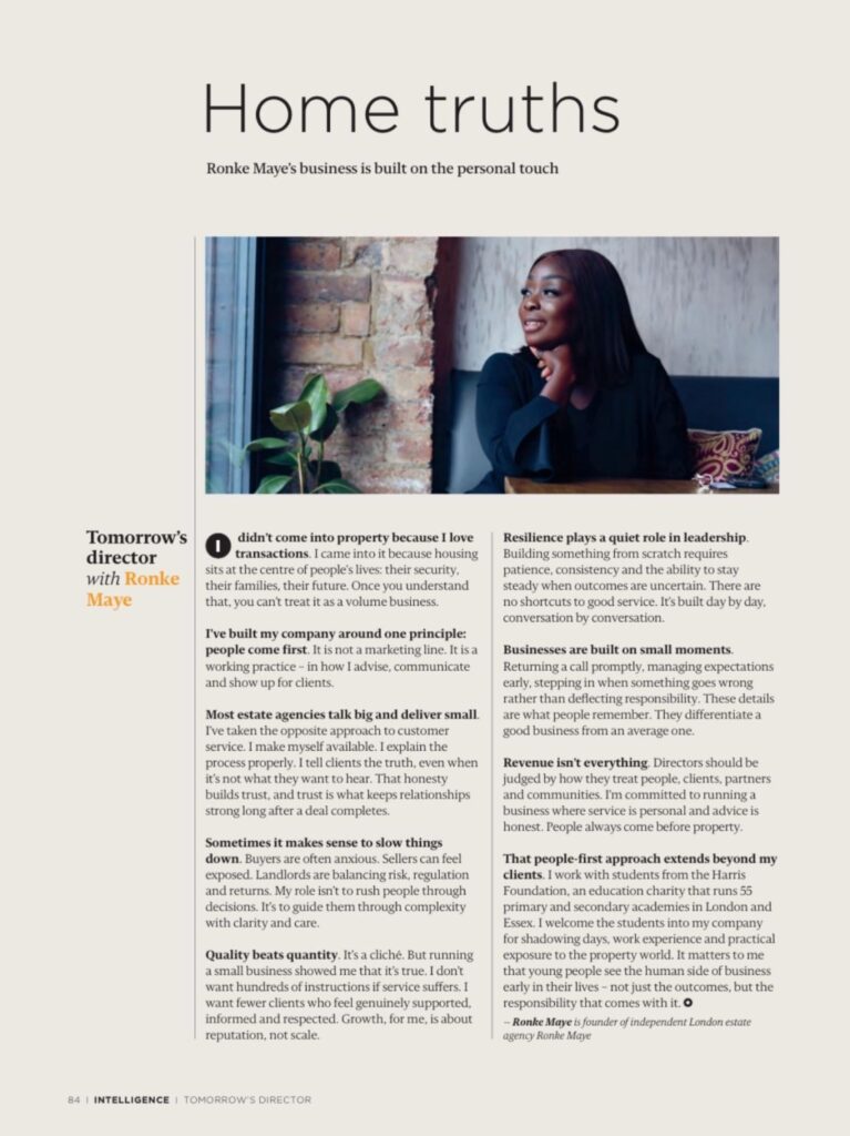 Selling and letting property is not simply transactional. For clients, it represents security, legacy, and long-term decision-making. That responsibility demands clarity, honesty, and leadership—particularly in a market that can prioritise speed over standards.